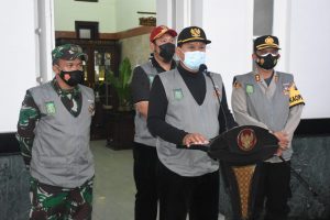 Madiun, Forkopimda Kota Madiun menggelar apel pasukan Pemberlakuan Pembatasan Kegiatan Masyarakat (PPKM). Acara ini dipimpin langsung oleh Walikota Madiun Drs. H. Maidi, S.H., M.M., M.Pd. dan didampingi oleh Dandim 0803/Madiun Letkol Inf Edwin Charles serta Kapolresta Madiun AKBP Dewa Putu Eka Darmawan S.I.K.,M.H., di Halaman Balaikota Madiun. Senin malam (11/01/2021).