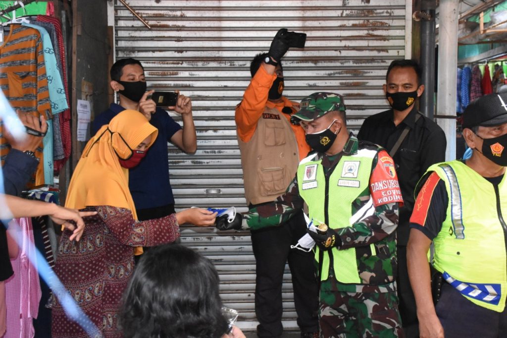 Kali ini sasaran operasi masker Forkopimda Kabupaten Madiun adalah Pasar Dolopo yang menjadi titik berkumpulnya aktifitas warga, terutama saat hari Minggu.