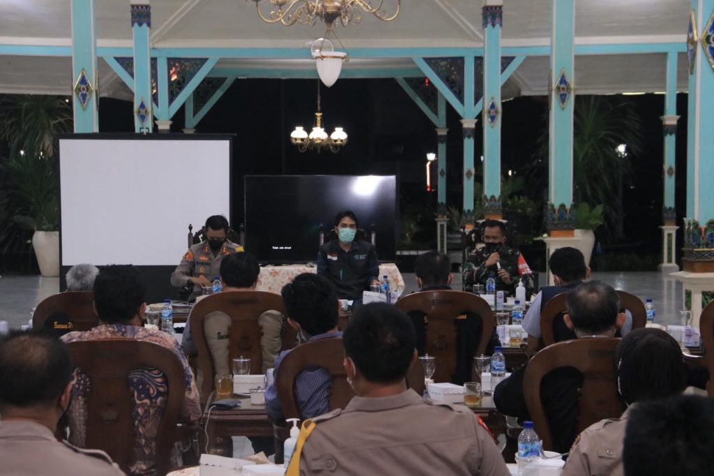 Madiun, – Bertempat di Pendopo Muda Graha Pemerintah Kabupaten Madiun, Bupati Madiun H. Ahmad Dawami Ragil Saputro, S.Sos yang didampingi Dandim 0803 Madiun Letkol Inf Edwin Charles dan Kapolres Madiun AKBP R. Bagoes Wibisono H.K., S.I.K, M.Si, melaksanakan Rapat Pelaksanaan Pembatasan Masyarakat (PPKM) Mikro bersama Gubernur Jawa Timur secara Virtual. Senin malam (08/02/2021).