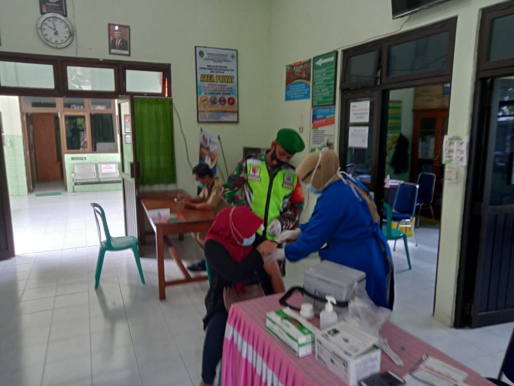 Madiun, – Bertekat untuk mensukseskan vaksinasi Covid- 19, Kodim 0803/Madiun menurunkan para Babinsa untuk mendampingi dan memantau pelaksanaan penyuntikkan vaksin Covid-19 di wilayah Kota dan Kabupaten Madiun.
