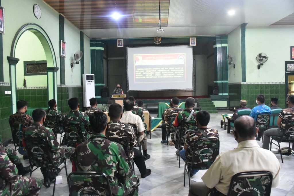 Dengan tetap memperhatikan protokol kesehatan, kegiatan tersebut digelar dengan mengusung tema mewujudkan Binter TNI AD yang adaptif melalui kegiatan pembinaan kerukunan umat beragama demi mencegah konflik sosial antar umat beragama serta menjaga persatuan dan kesatuan bangsa.
