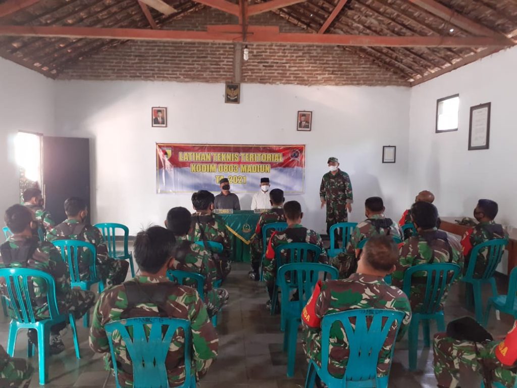 Kapten Arm Ragil Nurcahyo selaku Pasipamopslat menjelaskan bahwa dalam aplikasi lapangan, nantinya para peserta latihan akan melaksanakan praktek ditiga wilayah berbeda yaitu wilayah Koramil 0803/01 Taman, wilayah Koramil 0803/08 Mejayan dan wilayah Koramil 0803/14 Dagangan.