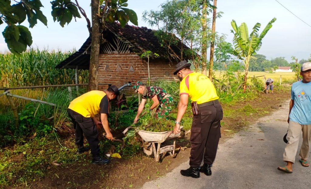 Madiun – Untuk mewujudkan lingkungan yang bersih dan sehat, Anggota Koramil 0803-12/Dolopo bersama tiga pilar dan warga Desa Doho, Kecamatan Dolopo, Kabupaten Madiun, melaksanakan kerja bakti membersihkan lingkungan, Sabtu (19/3/2022).