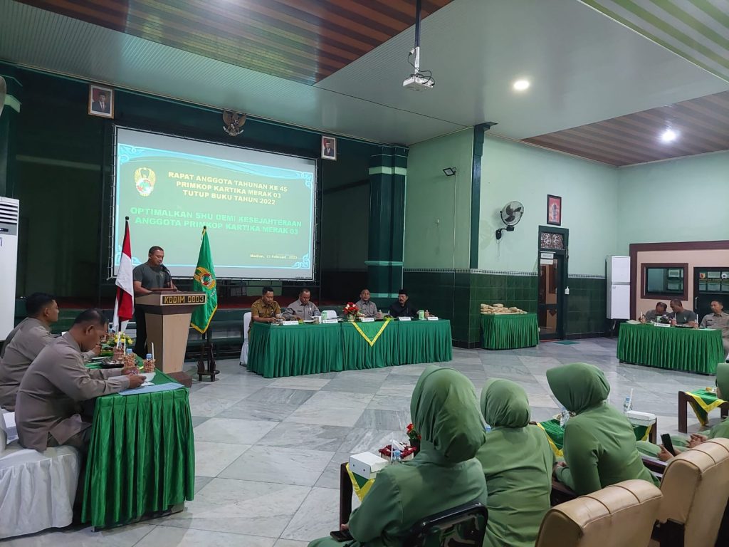 Pimpin RAT Primkop Merak 3, Dandim Madiun: Koperasi Harus Maju dan Mampu Mensejahterakan Anggota.