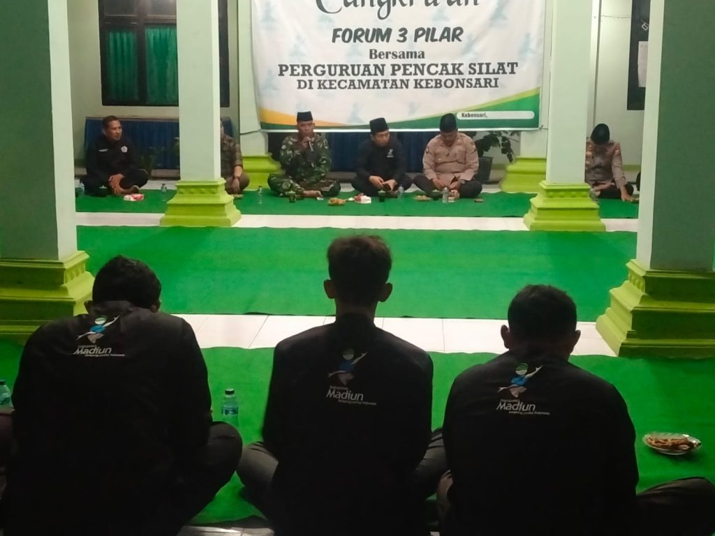 Terkait hal itu untuk menjaga keamanan dan ketertiban masyarakat, Muspika Kecamatan Kebonsari melaksanakan cangkrukan bersama ketua ranting perguruan pencak silat, bertempat di Pendopo Kecamatan Kebonsari, Kabupaten Madiun, Selasa (14/3/2023) malam.