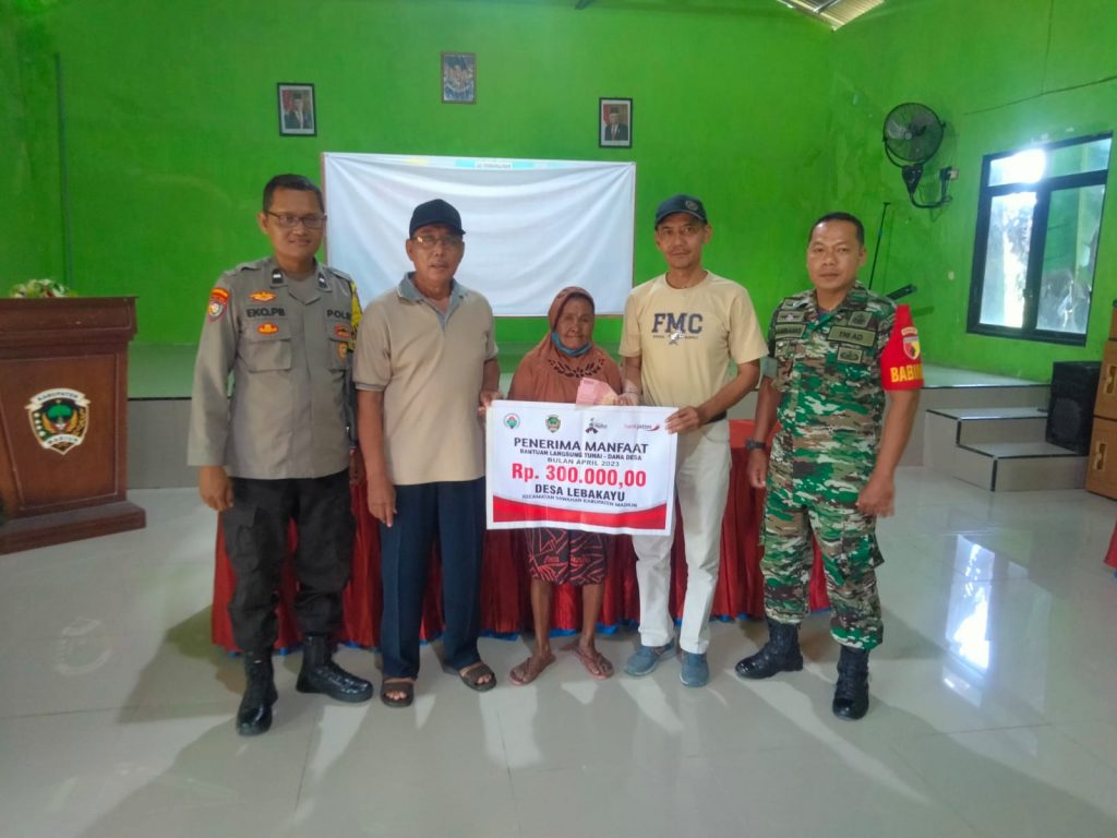 Madiun – Untuk memastikan pendistribusian Bantuan Langsung Tunai Dana Desa (BLT-DD) tepat sasaran, Babinsa Koramil 17/Sawahan, Kodim 0803/Madiun Sertu Bambang Kusbandono bersama Babinkamtibmas membantu pendistribusian BLT-DD. Bertempat di Balai Desa Lebakayu, Kec. Sawahan, Kab. Madiun, kegiatan tersebut berlangsung dengan aman dan lancar.