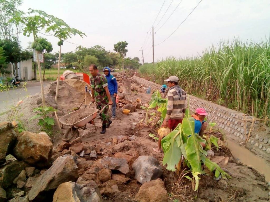 Cegah Erosi, Babinsa Joho Bantu Masyarakat Bangun Talud.