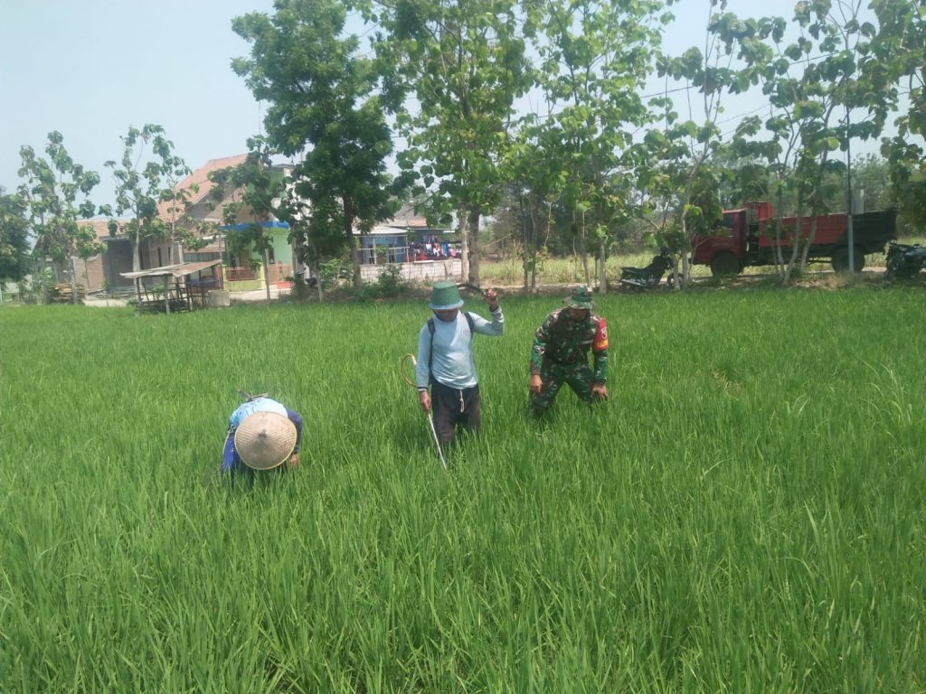 Sukseskan Swasembada Pangan, Babinsa Dampingi Petani Rawat Tanaman Padi.