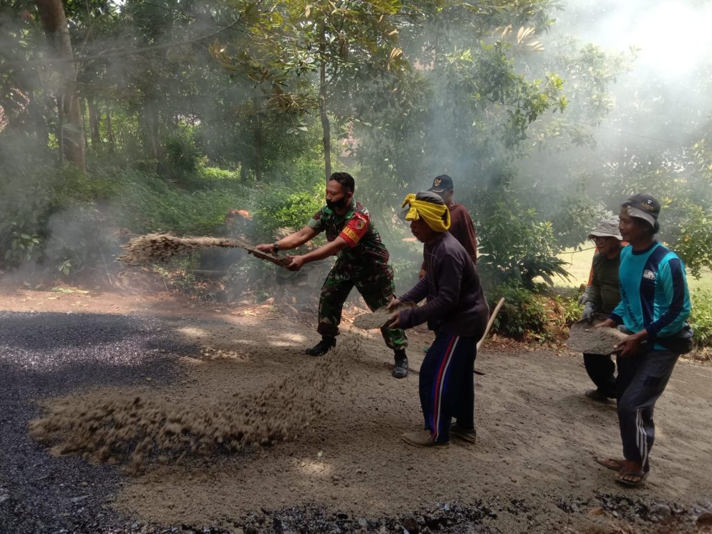 Hal itu disampaikan Babinsa Segulung Sertu Budi, disela kesibukannya membantu pengaspalan jalan di lingkungan Dusun Glatik RT 24, RW 09 Desa Segulung, Kecamatan Dagangan, Kabupaten Madiun, Sabtu (16/9/2023).