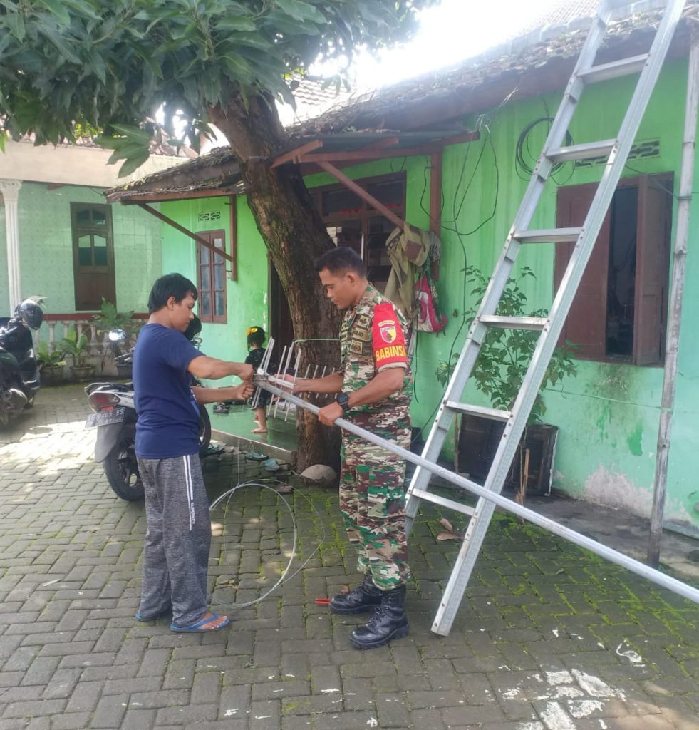 Kepedulian Babinsa Bantu Perbaiki Antena Televisi.