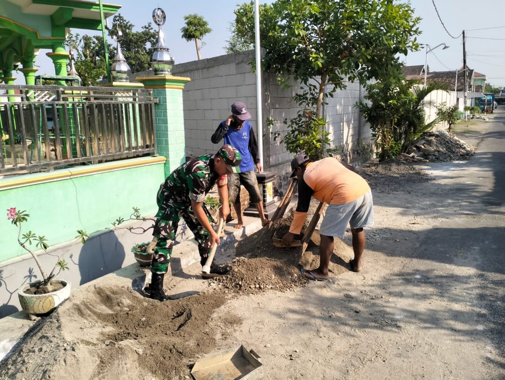 Peduli Terhadap Sarana Ibadah, Babinsa Koramil Jiwan Bantu Warga Bangun Tempat Wudhu.