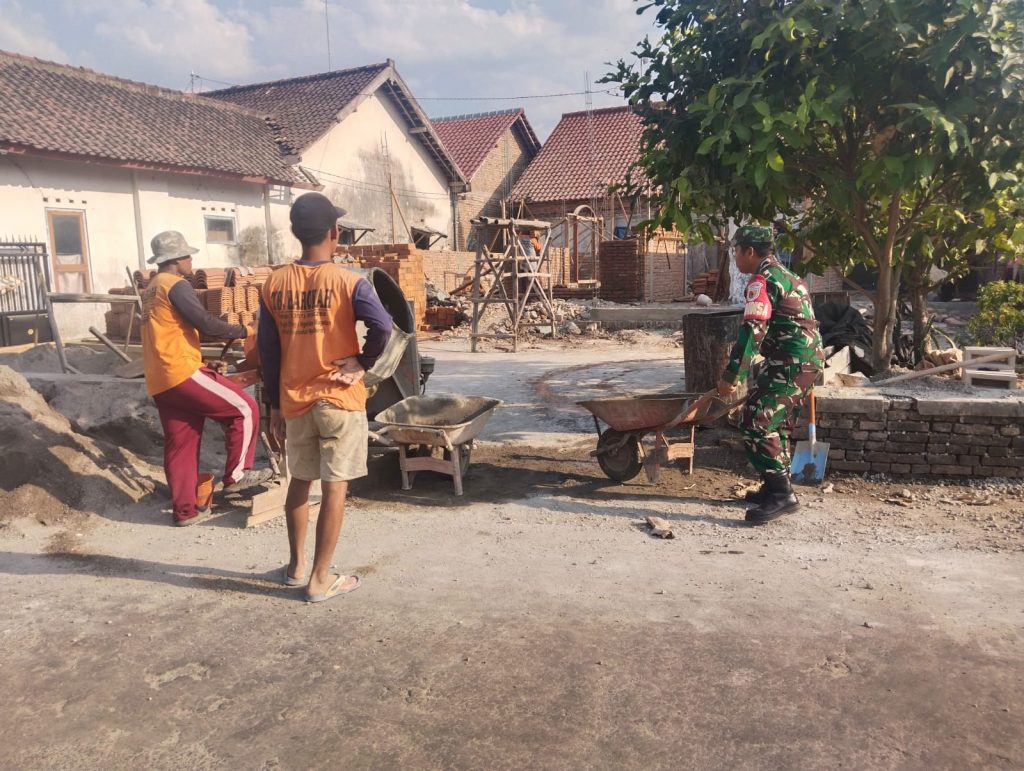 Wujud Kemanunggalan TNI-Rakyat, Babinsa Kebonsari Ikut Gotong royong Renovasi Rumah Warga.