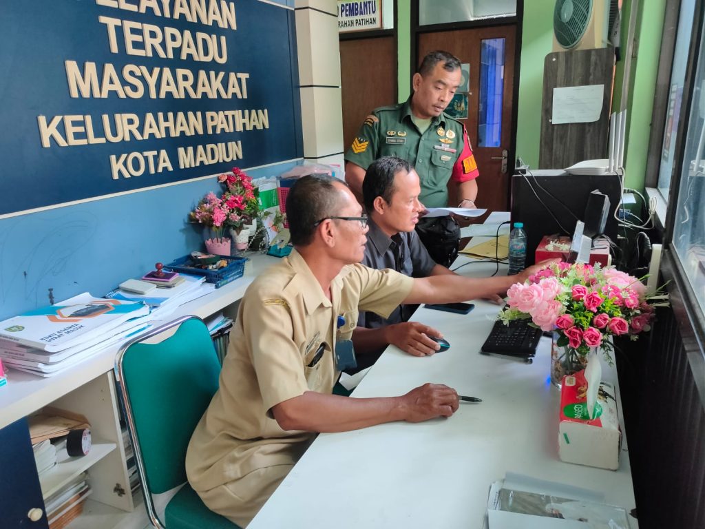 Madiun – Terus memperbaharui data wilayah binaan, Babinsa Kelurahan Patihan, Posramil 18/Manguharjo jajaran Kodim 0803/Madiun Serka Syamsul Efendi melaksanakan Pul Data Ter Bersama Perangkat Kelurahan di Kantor Kelurahan Patihan Kecamatan Kecamatan Manguharjo, Kota Madiun, Kamis (02/11/2023).