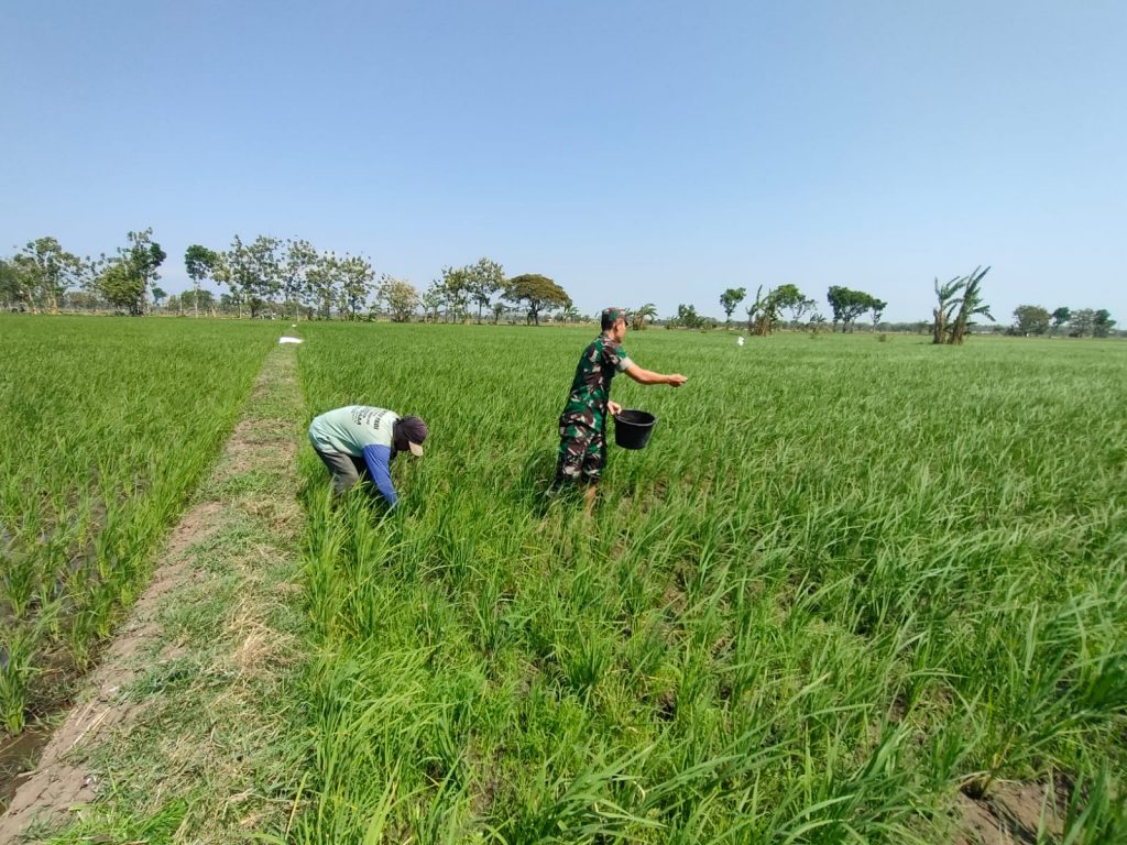 Sukseskan Program Ketahanan Pangan Nasional, Babinsa Kodim Madiun Dampingi Pemupukan Padi.