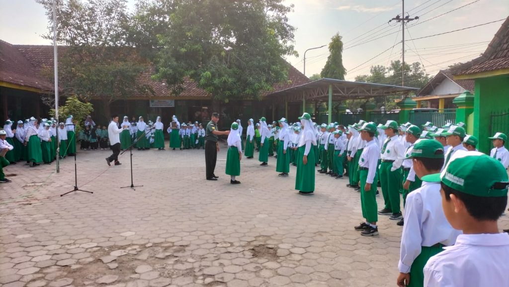Madiun – Babinsa Koramil 14/Dagangan, Kodim 0803/Madiun Serka Sutrisno, memberikan materi wawasan kebangsaan kepada siswa siswi MI Tarbiyatul Mubalighin, Desa Prambon, Kec. Dagangan, Kab. Madiun, Kamis (16/11/2023). Kegiatan tersebut dimaksudkan agar generasi penerus bangsa memiliki bekal karakter, keterampilan literasi yang baik dan memiliki kompetensi unggul yang mampu berpikir kritis, analitis, kreatif, komunikatif, dan kolaboratif.
