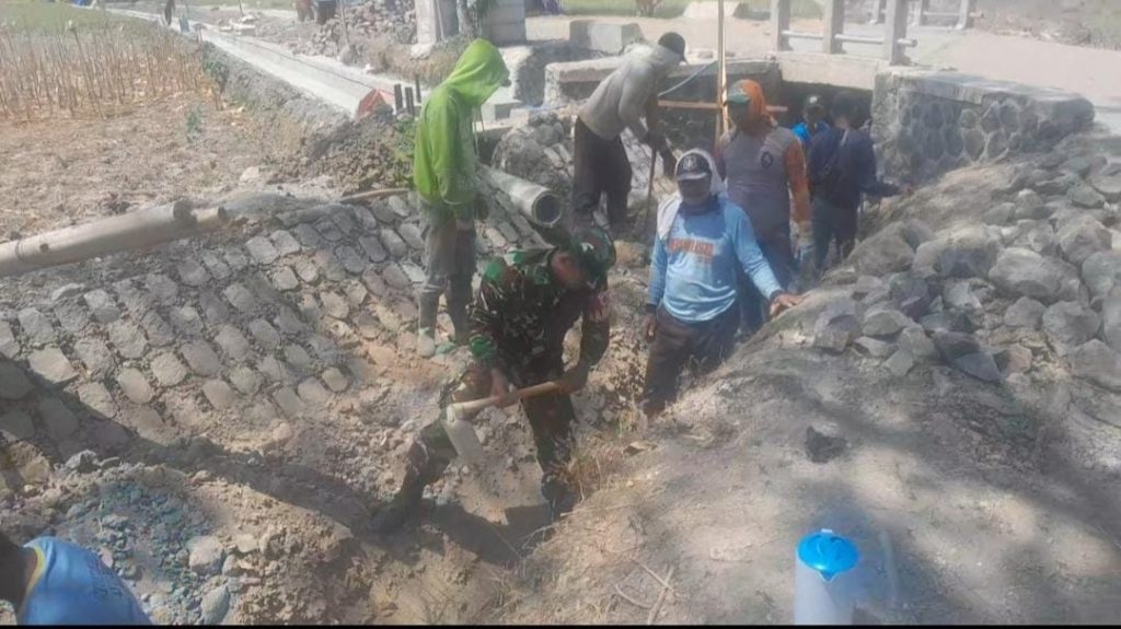 Babinsa Kodim Madiun Bantu Warga Bangun Saluran Irigasi.