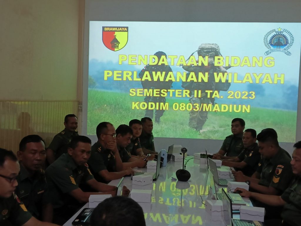 Madiun – Kodim 0803/Madiun menggelar Pendataan Bidang Perlawanan Wilayah (Wanwil) Semester II Tahun 2023, di Aula Makodim Jl. Pahlawan No, 25 Madiun, Jawa Timur, Rabu 22 November 2023.
