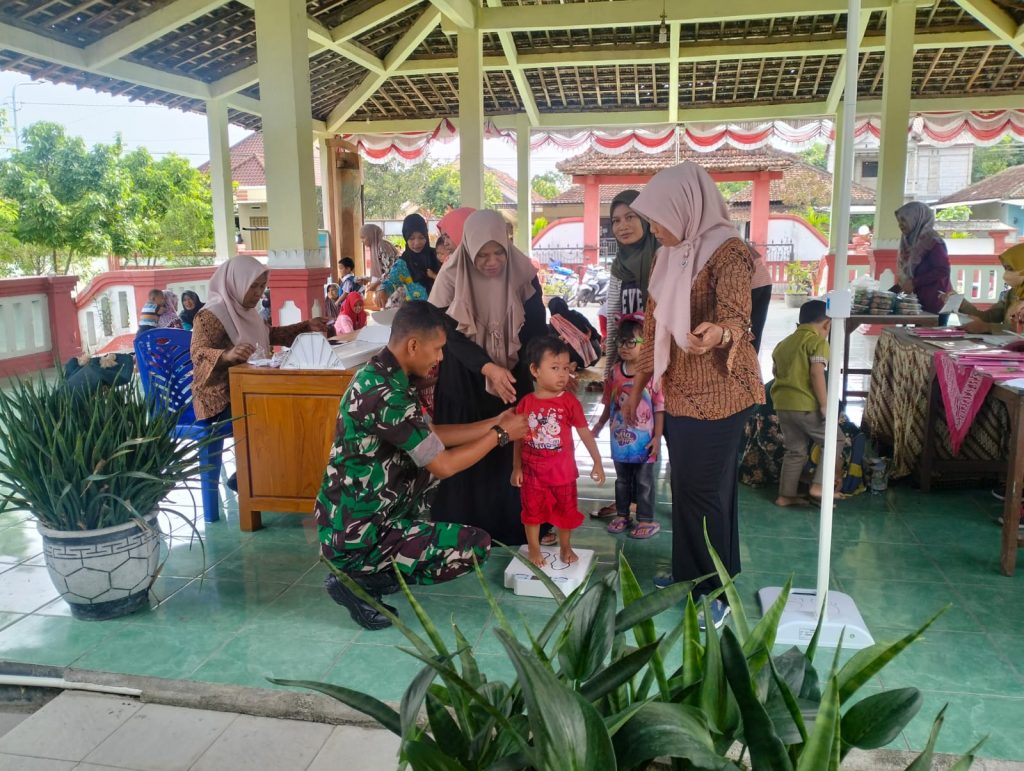 Madiun – Bulan timbang merupakan salah satu program dari Pemerintah dalam rangka memenuhi informasi tentang data status gizi balita dan mencegah terjadinya kekurangan Vitamin A. Terkait hal itu Babinsa Koramil 14/Dagangan Kodim 0803/Madiun Sertu Hendrik melaksanakan pendampingan program bulan timbang di wilayah binaan, Selasa (5/12/2023).