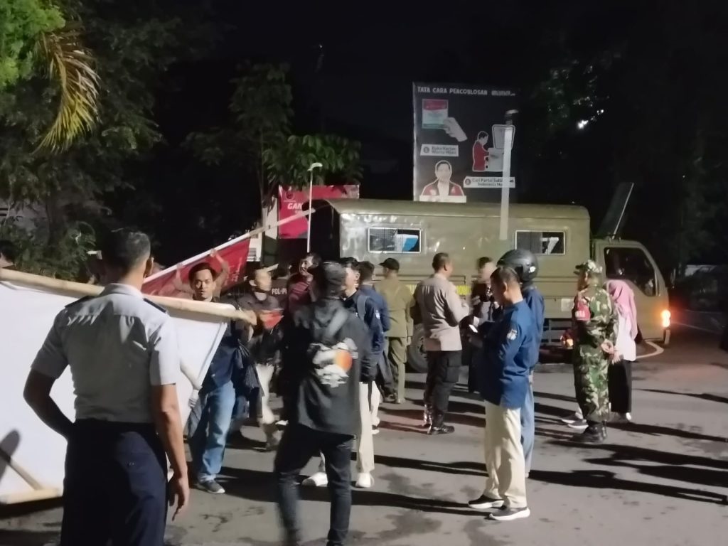 Madiun – Personel gabungan TNI-Polri, Satpol PP, Komisi Pemilihan Umum (KPU) dan peserta pemilu menurunkan alat peraga kampanye (APK) secara serentak menjelang masa tenang pada Minggu (11/2/2024) dini hari demi menjaga situasi kondusif pelaksanaan Pemilu 2024.