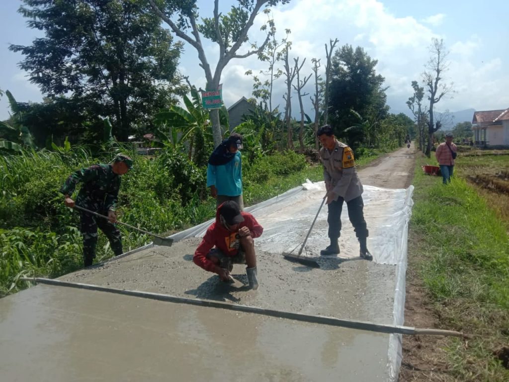 Karya Bakti Babinsa Koramil Geger Bantu Masyarakat Rabat Jalan.