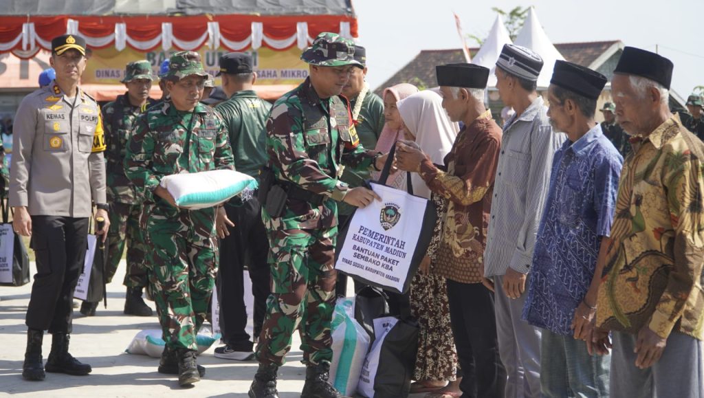 Madiun, — Dalam rangka mendukung kegiatan TNI Manunggal Membangun Desa (TMMD) ke-125, Satgas TMMD Kodim 0803/Madiun menyalurkan bantuan paket sembako kepada masyarakat kurang mampu di sekitar lokasi sasaran TMMD, tepatnya di Desa Ngranget, Kecamatan Dagangan, Kabupaten Madiun.