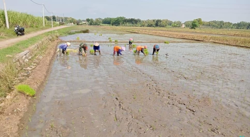 Kegiatan Pendampingan Tanam Padi oleh Babinsa Desa Kertosari