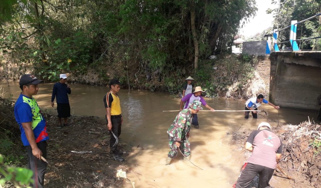 Madiun, Babinsa Koramil 0803/13 Kebonsari, Kodim 0803/Madiun Koptu Titus Sutrisno melaksanakan Komunikasi Sosial (Komsos) degan warga binaan. Caranya dengan membersihkan aliran sungai di wilayahnya Desa Sukorejo,