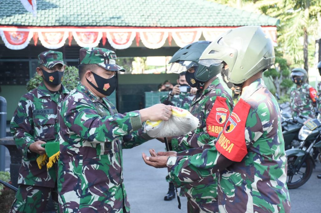 Madiun, Segala upaya telah dilakukan oleh TNI untuk meringankan beban bagi warga masyarakat yang terdampak Covid-19. Dalam rangka meringankan beban warga masyarakat dan peduli covid-19, Kodim 0803/Madiun menggelar
