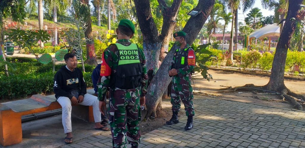 Petugas Babinsa Kodim 0803/Madiun yang berjaga di Alun-Alun Kota Madiun