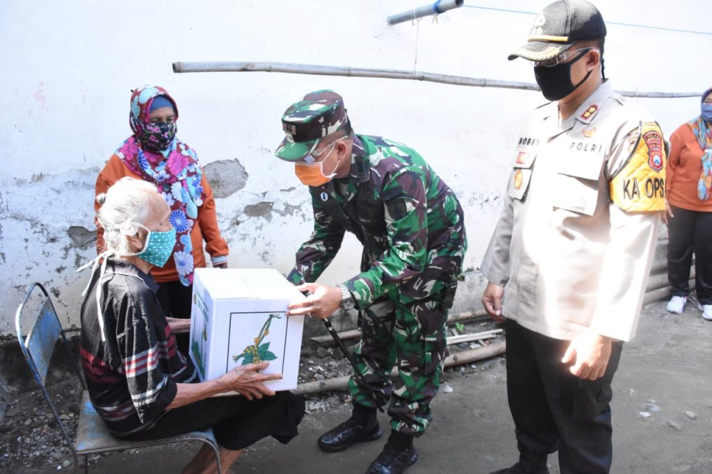 Bagikan Sembako, Dandim Madiun Dan Kapolresta Madiun Peduli Warga Yang Terdampak Pandemi Covid 19