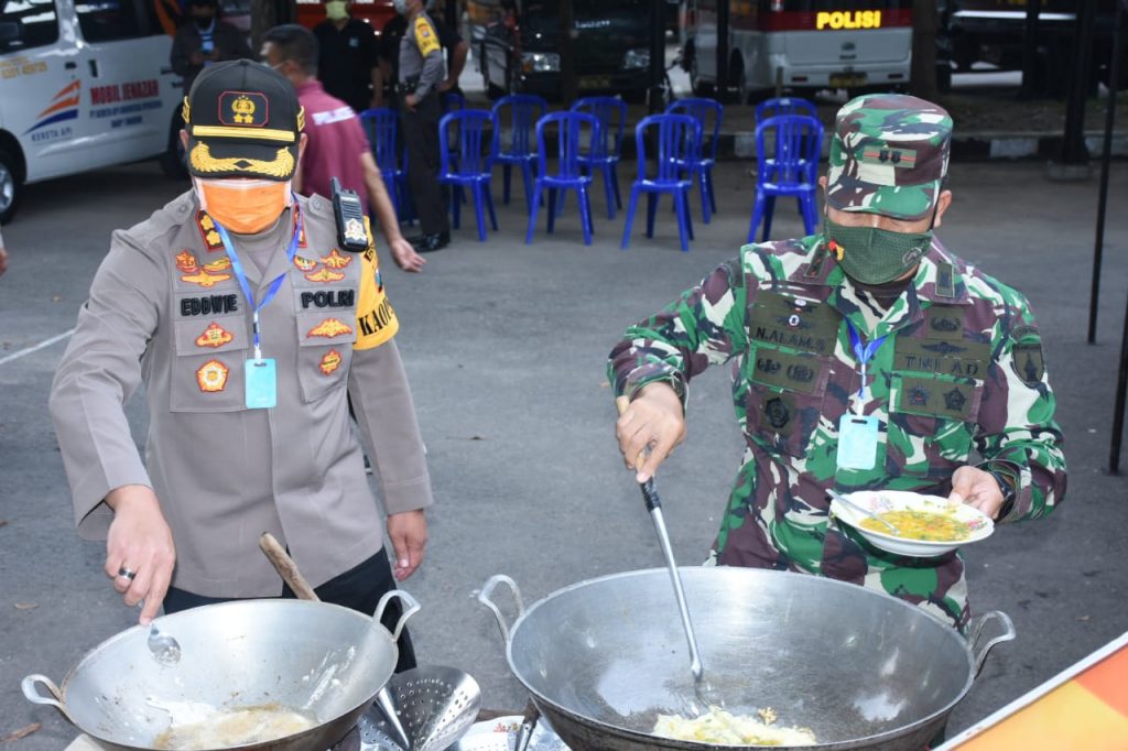 Dapur Umum TNI-POLRI Di Madiun Bagikan Makanan Kepada Warga Terdampak Covid-19