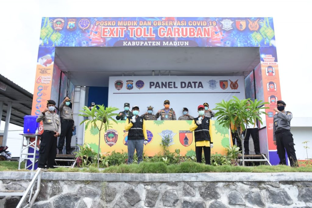 Madiun, Komandan Kodim 0803/Madiun Letkol Czi Nur Alam Sucipto, S.Sos., bersama Kapolres Madiun AKBP Eddwi Kurniyanto meninjau Pos Check Point Exit Tol Caruban Ops Ketupat 2020 di Desa Kuwu, Kecamatan Balerejo,
